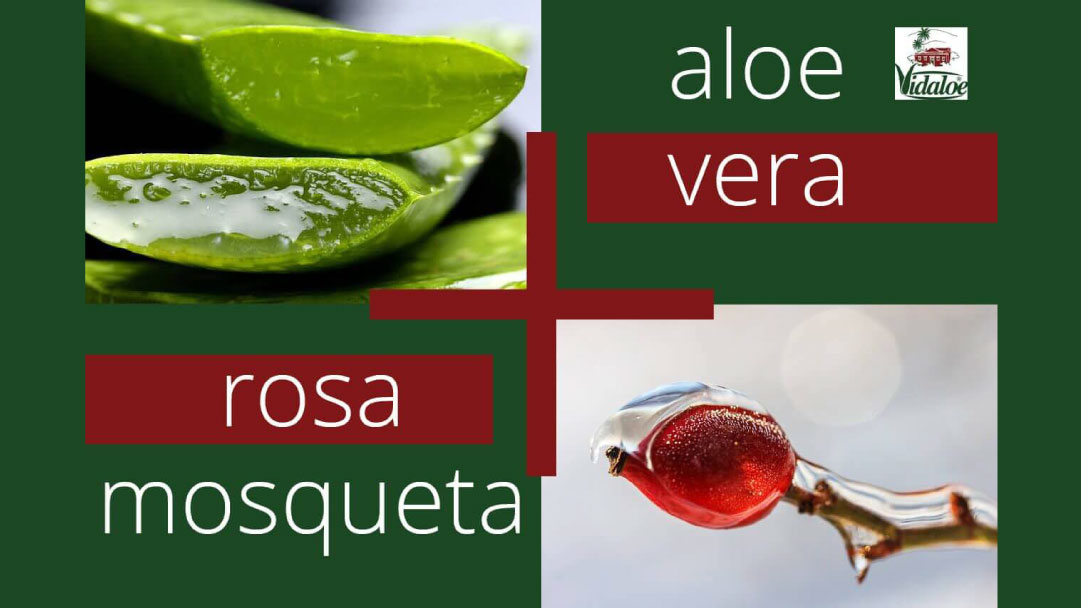 fotografia de aloe vera y rosa mosqueta